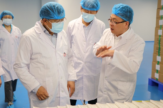 李建華書記一行實(shí)地參觀考察了產(chǎn)品展示區(qū)、美洲大蠊養(yǎng)殖區(qū)、康復(fù)新液智能化生產(chǎn)線,聽取了關(guān)于企業(yè)發(fā)展歷程、黨建與生產(chǎn)經(jīng)營融合成效,以及產(chǎn)品研發(fā)、全流程質(zhì)量管控等情況的匯報(bào),全面了解企業(yè)生產(chǎn)檢驗(yàn)關(guān)鍵環(huán)節(jié)與實(shí)際需求。