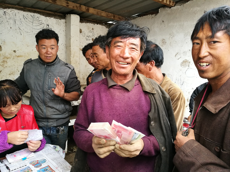 今天的20萬元,1個多小時便支付完畢,現金支付讓布拖縣樂安鄉火燈村的附農們個個喜笑顏開,忙著數錢。