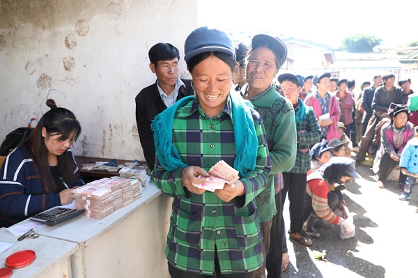 火燈村附子收購現場,村民們都喜笑顏開。