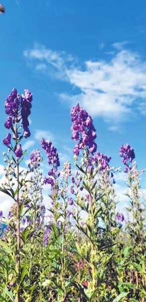 微風吹拂,相隔一條小路的不遠處,200畝附子花海在微風中搖曳,紫色的花朵點綴著深秋的布拖大地。今年的附子已經成熟,等個晴好的天氣即可采挖,到時候,地里又會呈現(xiàn)出熱火朝天的豐收景象,一個個附子“金坨坨”即將破土而出,村民一張張幸福的笑臉將印刻進美好時光。