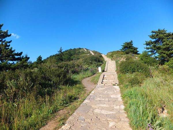 參觀完最后的一個廟,已是中午,天氣越來越熱,額頭上的汗珠一滴一滴往下流,衣服也緊緊貼在了背上,心想應該快到了吧,可哪知道才走了三分之一。看著通往天峰嶺上百個臺階很想休息一會,突然發現和我們同行的同事女兒,她才6歲,小臉紅撲撲的還意志堅定的一直往上爬,我也不能落后。打消了休息的念頭,一步一步地抬起沉重的腳步氣喘吁吁的往最高峰走起。